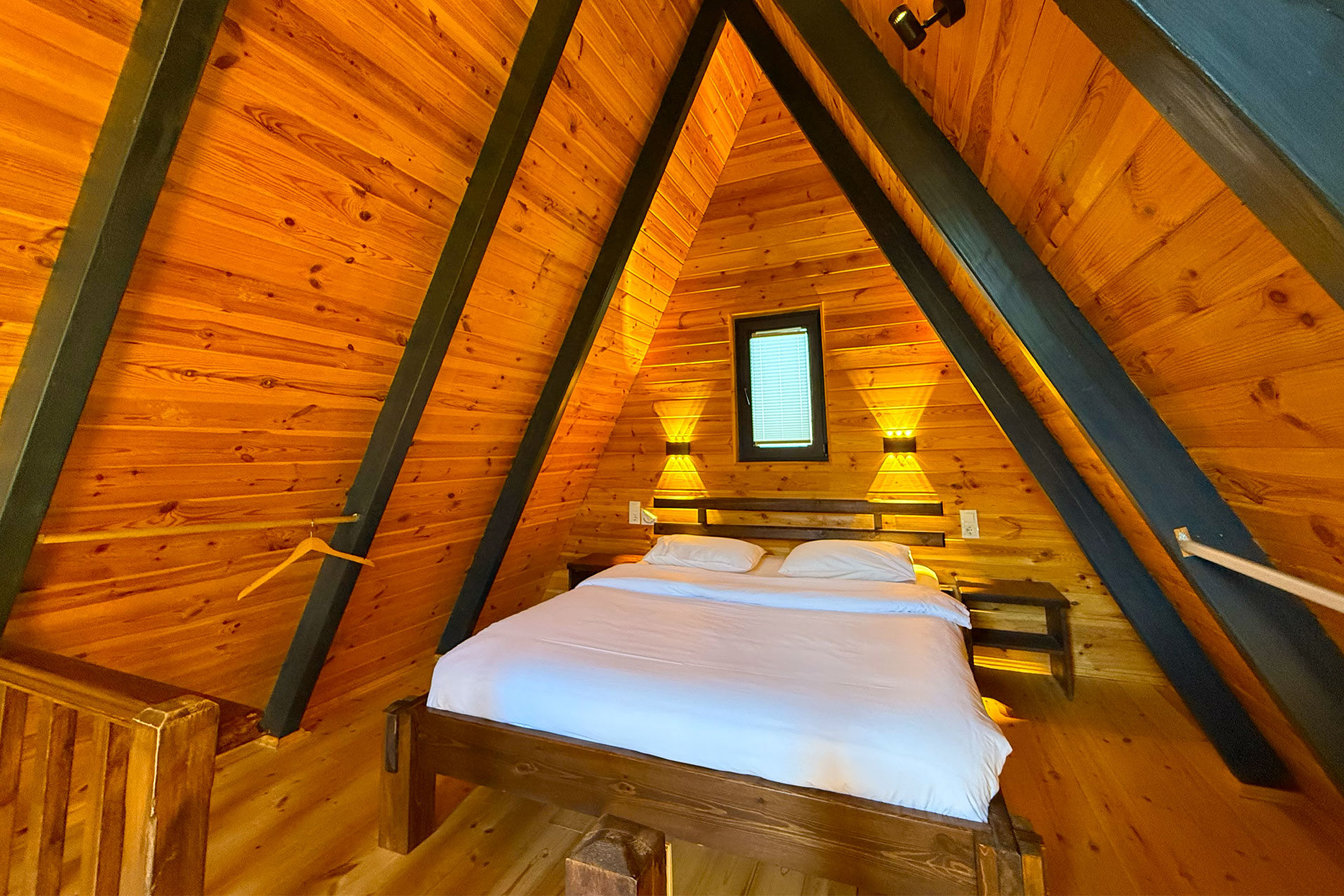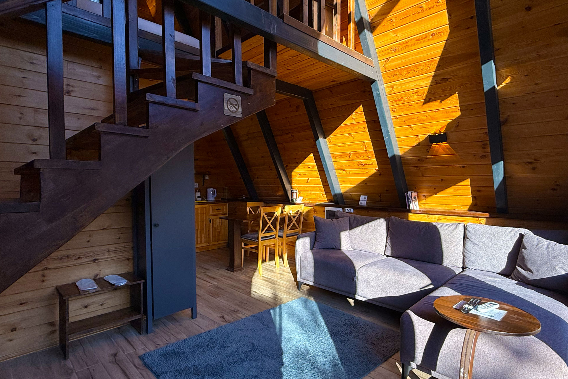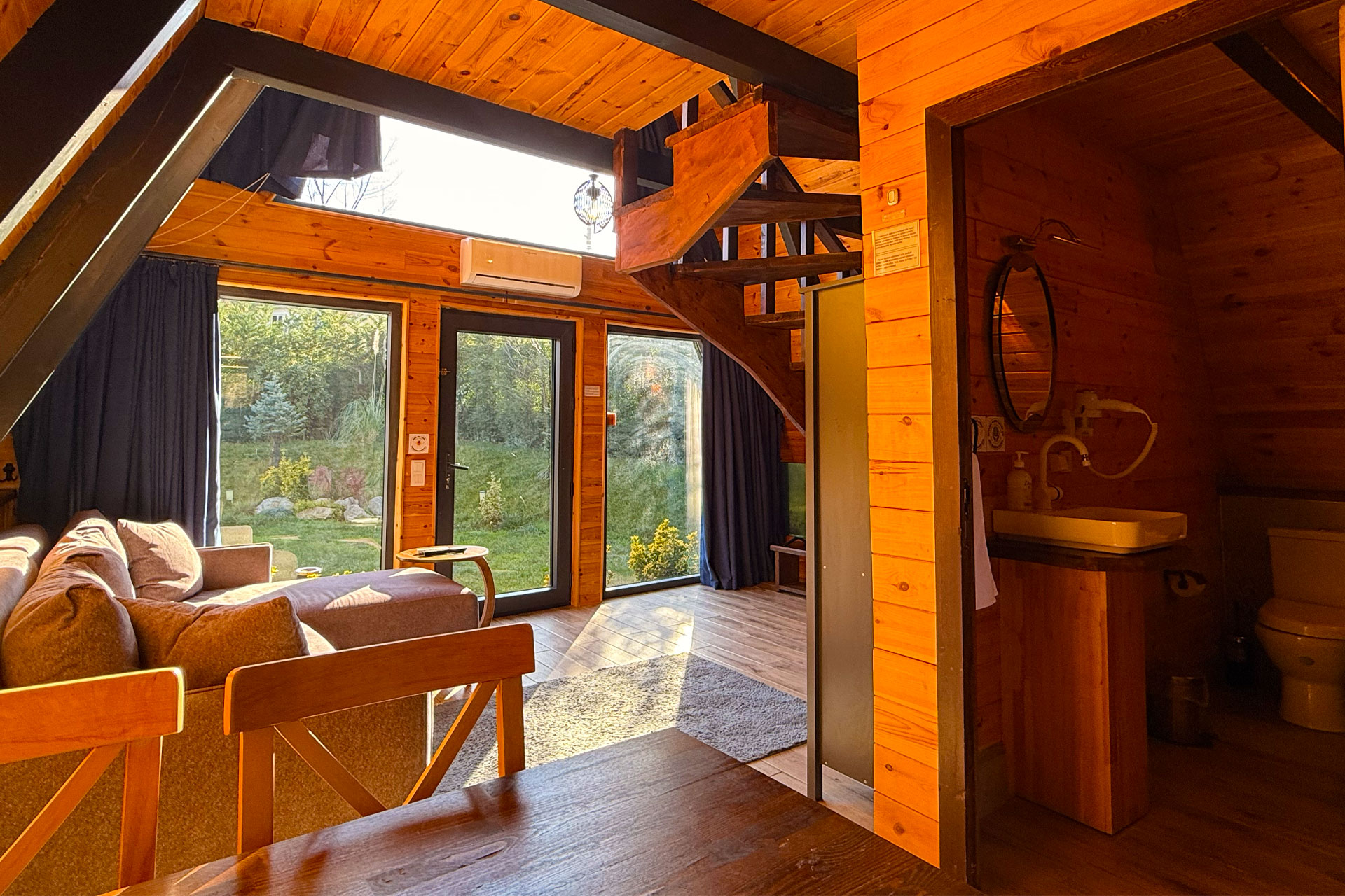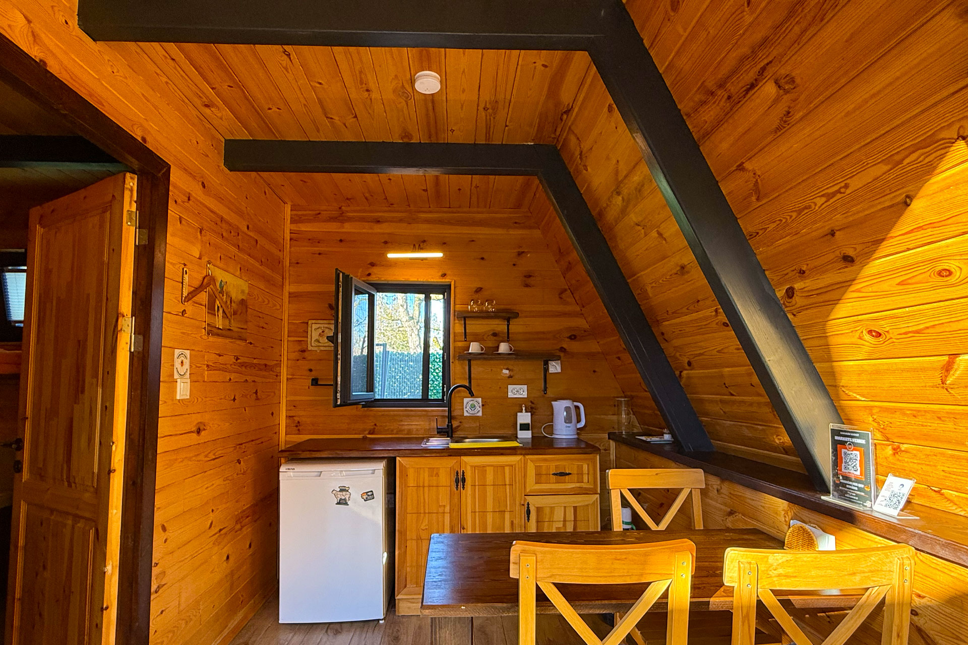 Yerden tavana pencereleri ile doğayı bungalovun içinde hissedeceğiniz 32 metrekare oturma alanında bulunan mutfakta, kullanımız için su ısıtıcısı, ocak, mini buzdolabı ve diğer mutfak ekipmanlarını kullanımınız için hazırladık.